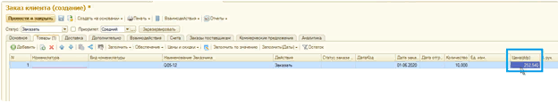 4. При создании на основании документа Спецификация дальнейшей цепочки документов (Заказ клиента-Заказ поставщика-Поступление товаров и услуг, ТД, Реализация товаров и услуг) в ячейку по колонке Цена (exw) заполняется корректное значение с учетом К1 и К2.