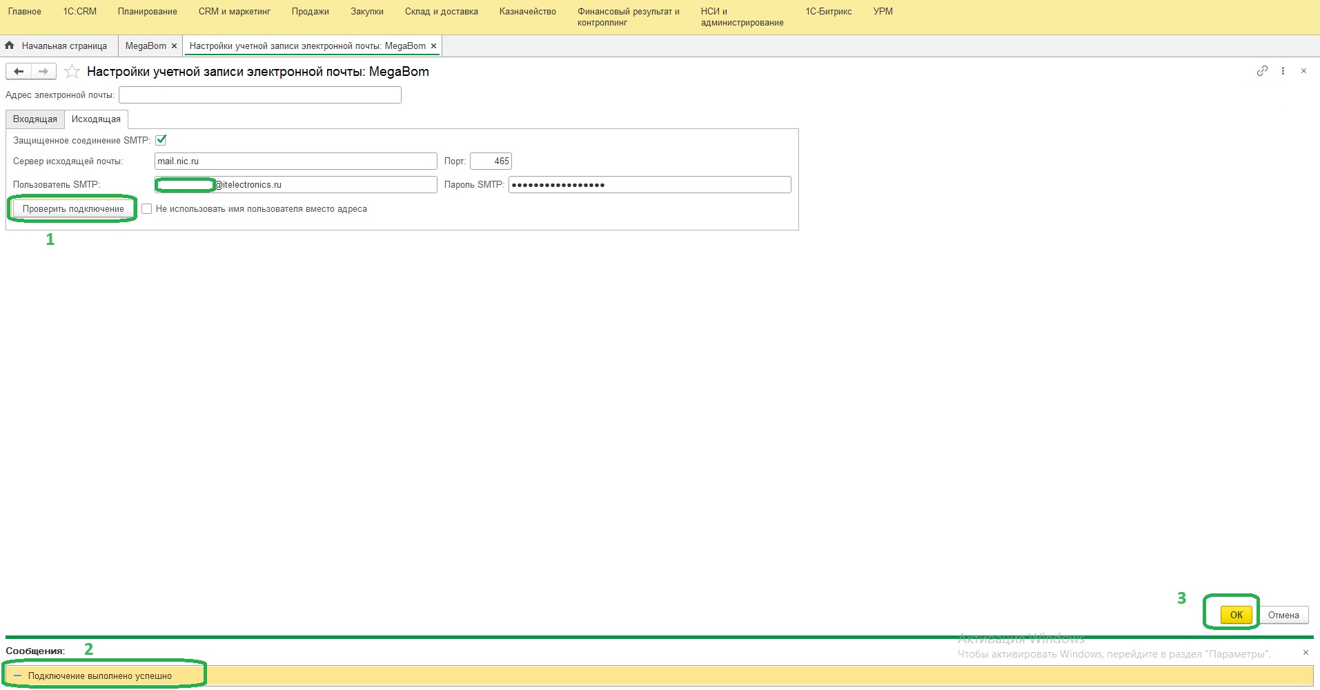 Для отправки запросов поставщикам необходимо настроить Параметры почтового клиента(SMTP).