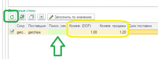 Если проставляем коэффициенты и срок поставки снова Сохраняем настройки.