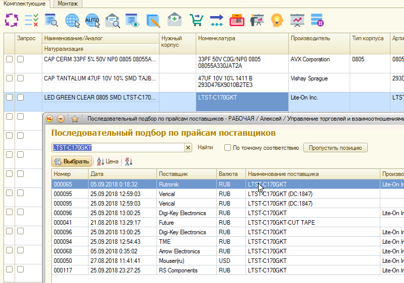 Необходимо выбрать нужные строки, нажать кнопку формирования запроса поставщикам, и выбрать нужных поставщиков
