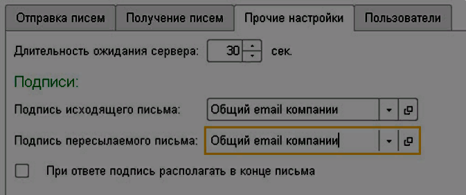 -Выбираются подписи исходящего/пересылаемого письма (из справочника «Подписи электронных писем»).