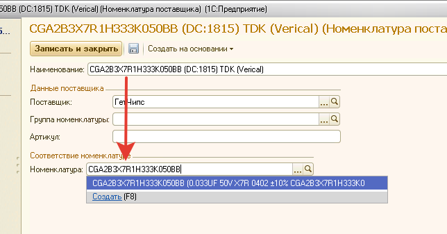 Неидентифицированные позиции, идентифицирум, путем редактирования номенклатуры поставщика