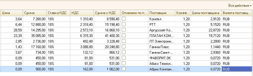 Процедура частично аналогична п.4, т.е. идентификация соответствия номенклатуры поставщика и номенклатуре в базе присутствует.
