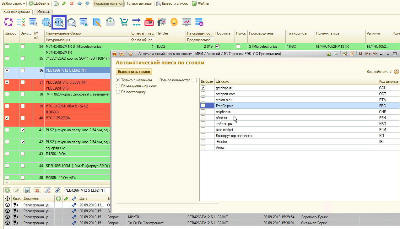 Предварительно выбираем курсором позиции, и нажимаем кнопку автопоиска. Необходимо выбрать нужные агрегаторы, по которым будет происходить поиск.