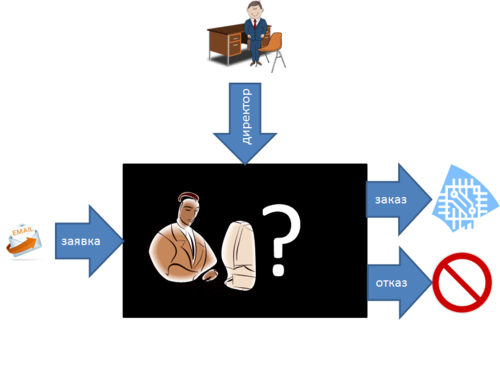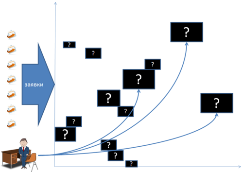 Так как обычно это заявка не одна, то это много черных ящиков, и при большом количестве заявок, директор способен контролировать лишь ключевых заказчиков. Понятное дело, что какая-то часть заявок останется без внимания, и не будет доведена по каким-то причинам до заказа. Иногда бывает так, что крупный потенциальный клиент "прощупывает" поставщика через небольшую и проблемную заявку. Менеджер соответственно успешно ее "сливает", и потенциальный крупный клиент не становится таковым.