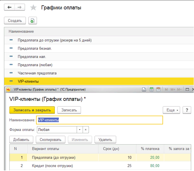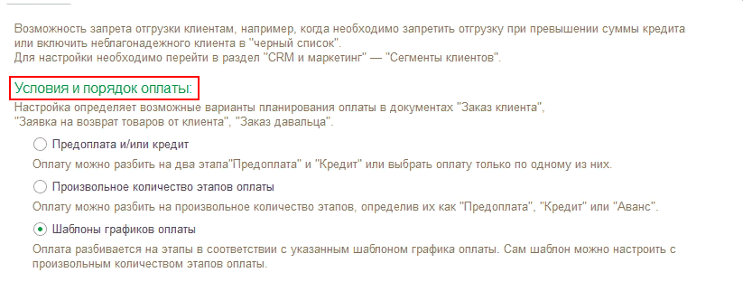 При расчетах «По заказам» график оплаты задается в правилах оплаты заказа.