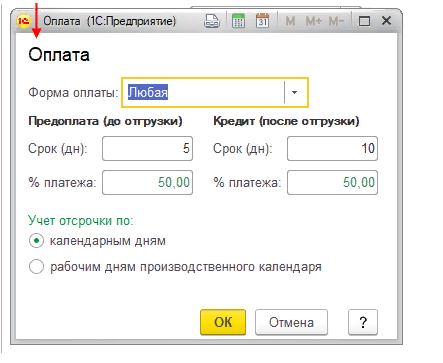 - Предоплата (до отгрузки) – требуется предоплата до отгрузки товара клиента (при работе с клиентами) и предоплата до отгрузки товара со склада поставщика (при работе с поставщиками).