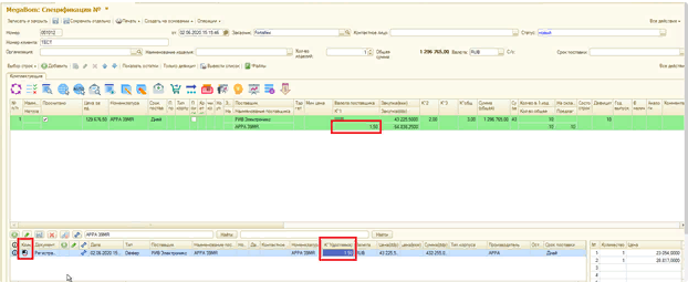 При выборе предложения поставщика в строку, если в Карточке Заказчика(покупатель) и Карточке поставщика заблаговременно были сохранены значения К1 и К2, значение Цена (ddp) автоматически пересчитается с учетом данных К1 и К2.