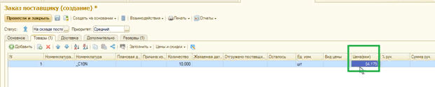 5. При проведении документа Заказ поставщика дополнительно в документе Заказ клиента перезаписываются значения по К1 и Цена поставщика, Поставщик, если они были изменены в документе. Если нет, то переносятся в Заказ клиента.