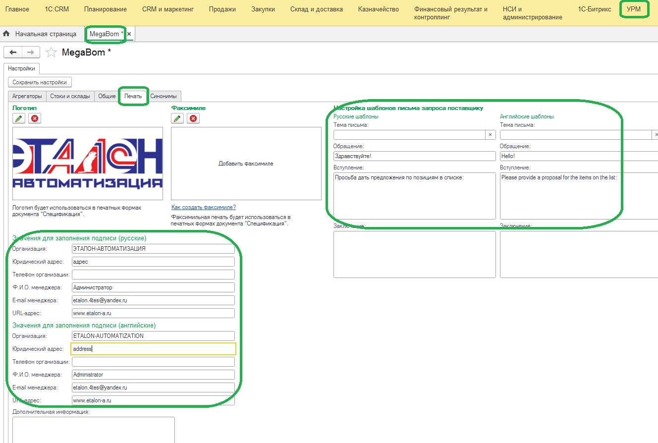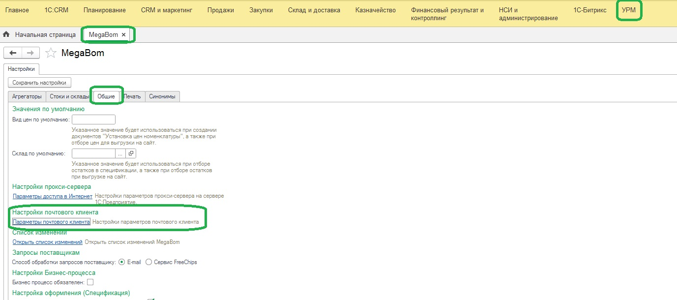 Для отправки запросов поставщикам необходимо настроить Параметры почтового клиента(SMTP).