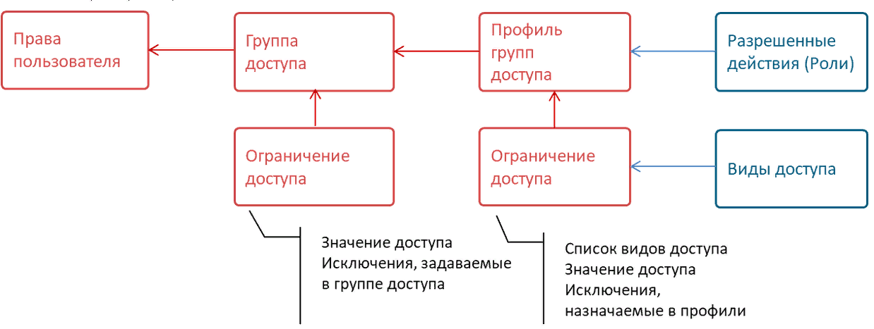 Профиль групп доступа – это шаблон настроек прав. Они позволяют укрупненно определить права: задают список ролей и видов доступа. При этом ограничения по конкретным значениям для профиля групп доступа могут не задаваться, а уточнятся в Группе доступа. Использование групп пользователей позволяет не редактировать группы доступа всякий раз, когда появляется новый пользователь: достаточно один раз включить нового пользователя в группу пользователей.