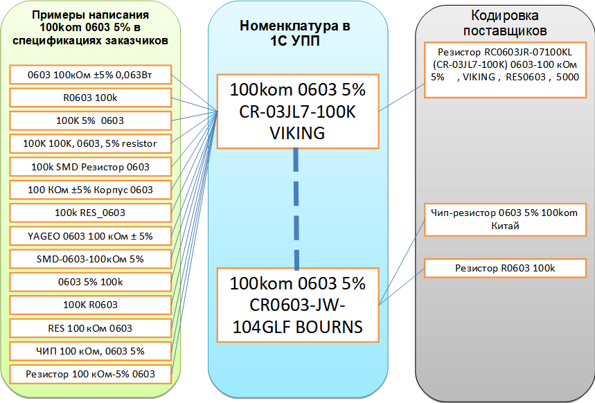 У 99% компаний, существует проблема ведения каталога номенклатуры. Дубликаты, неправильные наименования - нормальное явление. В сфере электронных компонентов это чувствуется особенно остро, потому что наименований РЭК существует несколько миллионов. И если для активных компонентов еще как-то все относительно терпимо, то по пассиву, резисторам и конденсаторам "кто-на-что-горазд". Один и тот же резистор, у всех называется по-разному. Отчасти это обусловлено тем, что для "чтения" кодировки разных производителей, необходимо обладать фундаментальными знаниями или обложиться описаниями кодировок.