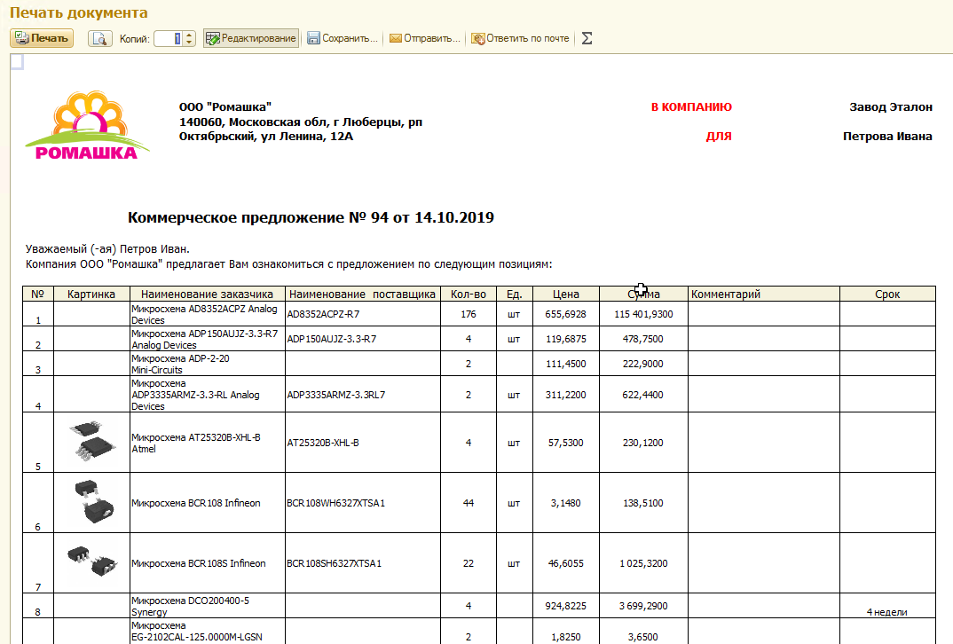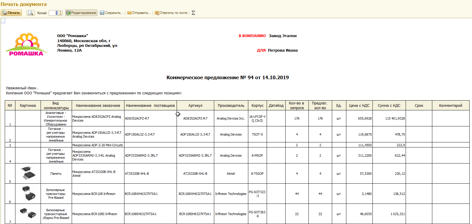 В коммерческих предложениях есть несколько типовых вариантов печатных форм
