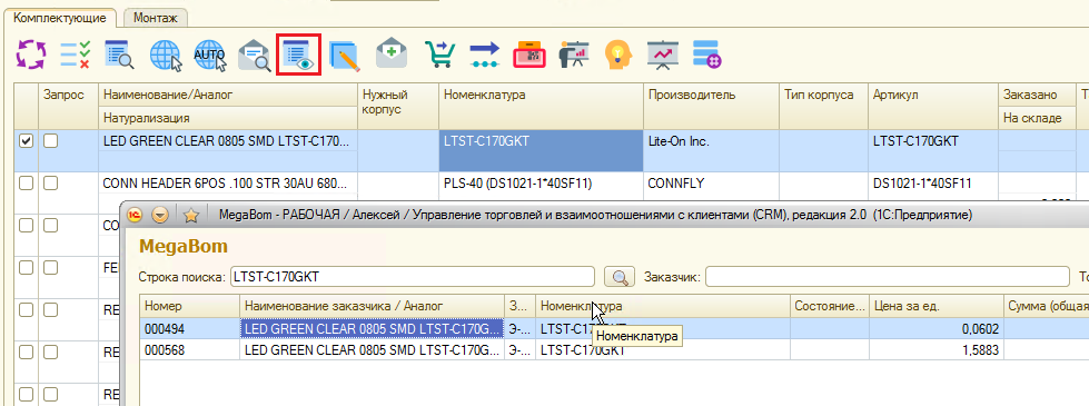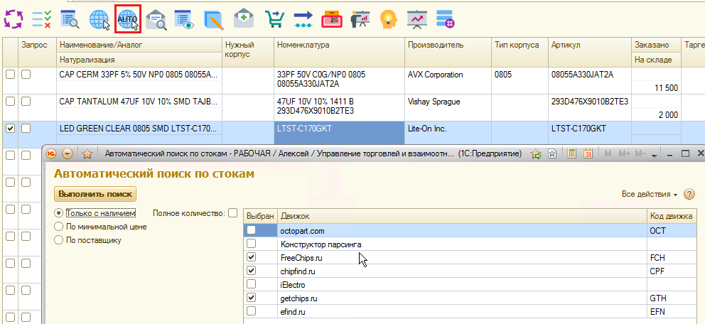 Автоматичский поиск номенклатуры в онлайн каталоге