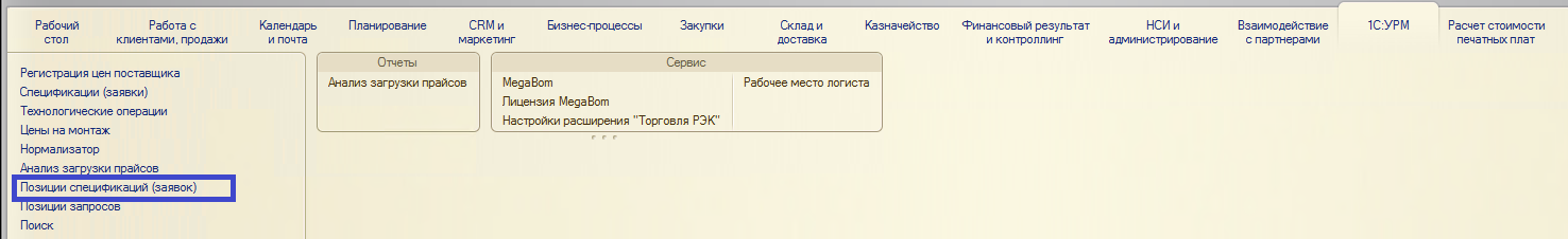 Данное рабочее место используется при "поточной" обработке спецификаций (заявок)