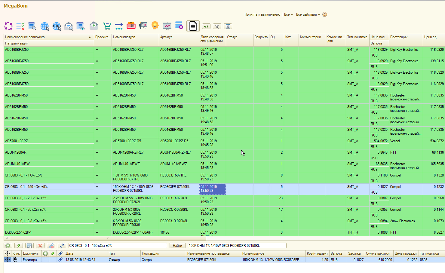 Возможна групповая отбработка нескольких заявок с одинаковыми позициями.