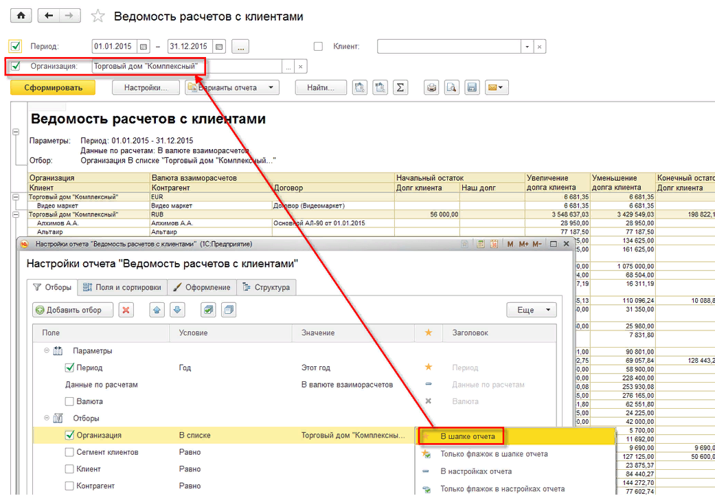 Настройка отчета.
