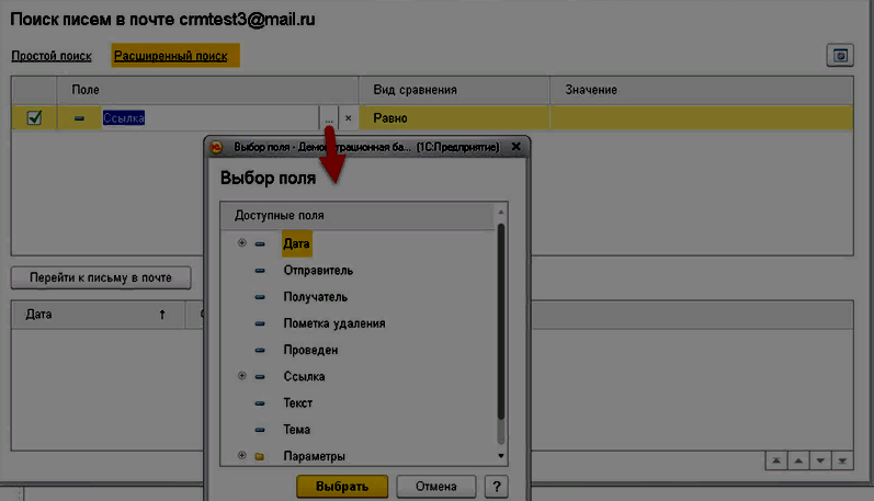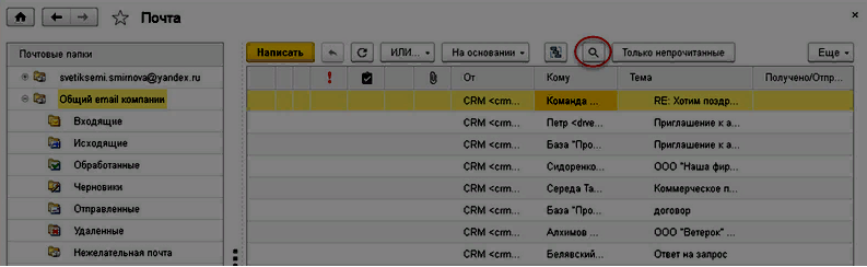Адреса электронной почты, которые присутствуют в электронном письме, автоматически сопоставляются с имеющимися клиентами (их контактными лицами), пользователями и физическими лицами. Сопоставление происходит поиском по клиентской базе, и в случае наличия у найденного объекта такого же электронного адреса, найденный объект будет подставлен в письмо. Если в базе имеется несколько объектов с одним и тем же электронным адресом – будет подставлен первый из найденных объектов с этим адресом.