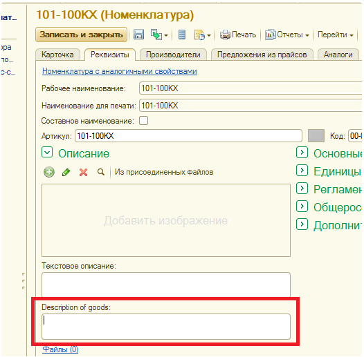 10. Описание - переносит значения Описание из колонки Файла/Карточки Номенклатуры в колонки Описание в подвал Товары декларации раздела Товары декларации документа Таможенная декларация на импорт;
