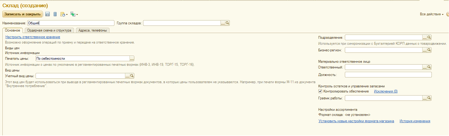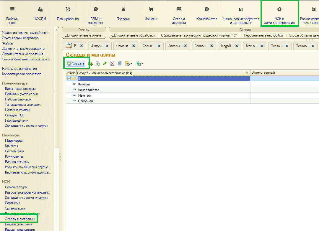 - Ордерные склады в разделе НСИ и администрирование – Настройка разделов – Склад и доставка – Склад;
