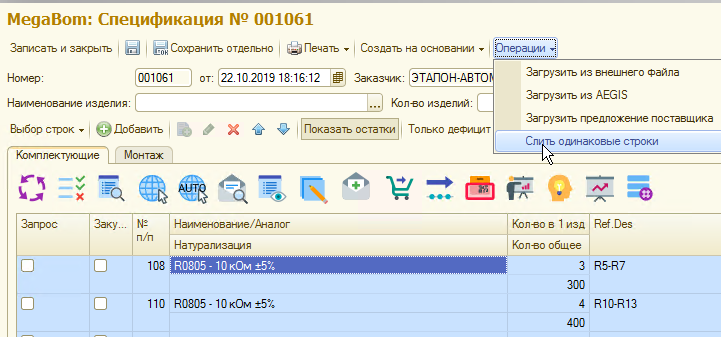 Данная функция в основном используется контрактными производителями, когда в спецификации заказчика одинаковые позиции не объединены, и позиционные обозначения идут или по одному на строку, или еще по какому принципу, известному только составителю спецификации.