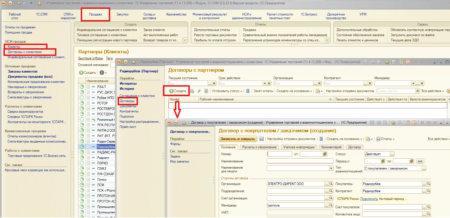 Создание документа Договор с контрагентом