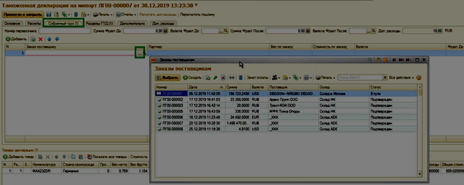 Добавление документов Заказ поставщику подтягивает в документ Таможенная декларация на импорт товары из документа, если они ранее не были добавлены по документу Приобретение товаров и услуг (актуально для случаев оформления частичного поступления позиций).