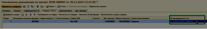 Прим.: Если все документы, предшествующие данному документу Таможенная декларация на импорт, заполнялись корректно, колонка Серия заполнится автоматически.
