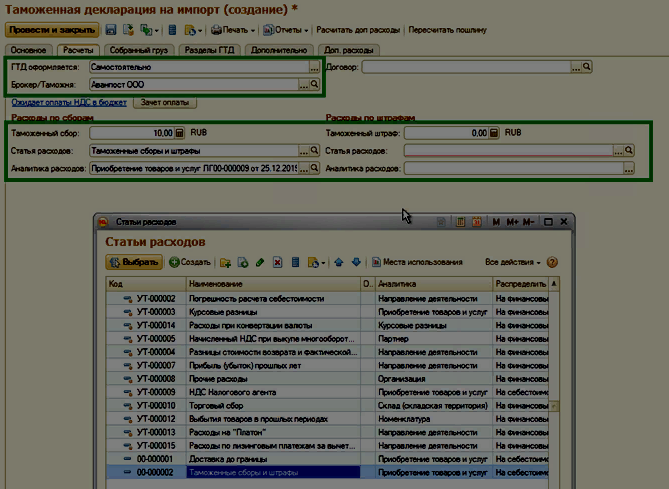 Данный расход учитывается в сумму пошлины согласно процентной ставке пошлины.