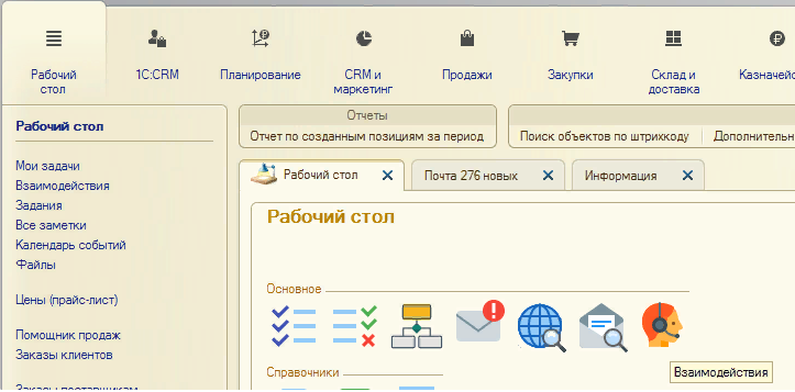 Список взаимодействий доступен в рабочем месте Главное – Почта, задачи – Взаимодействия и может выводиться на рабочий стол пользователя.